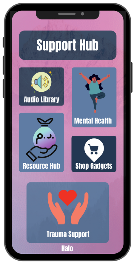 Access to various alarm sounds.Access to various supporting sounds that aid in users getting to their destination safely.Access to mental health and well being support.Access to podcasts and audio books.Access to articles and information.Access to additional apps and gadgets that can support mental health.Access to different safety gadgets and discounts.Access to counseling and trauma support.